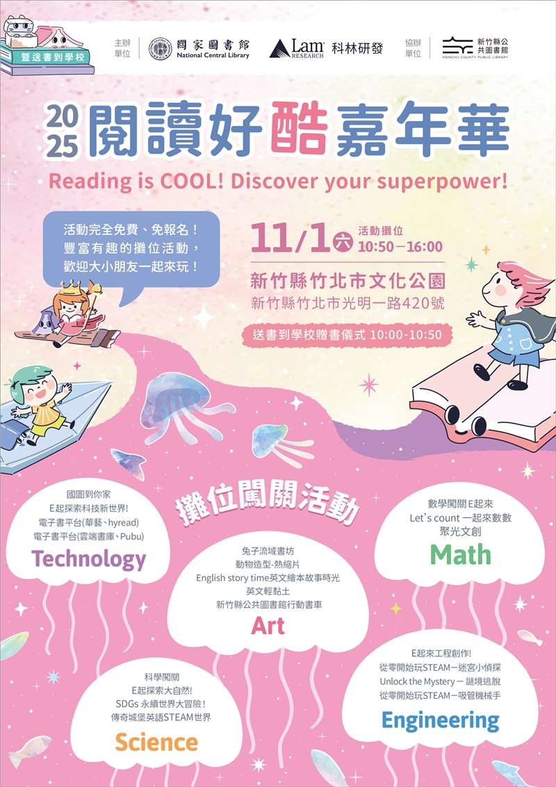 由國家圖書館與 Lam Research 科林研發共同舉辦的「2025 閱讀好酷嘉年華」活動將於 11/1 (六) 登場!