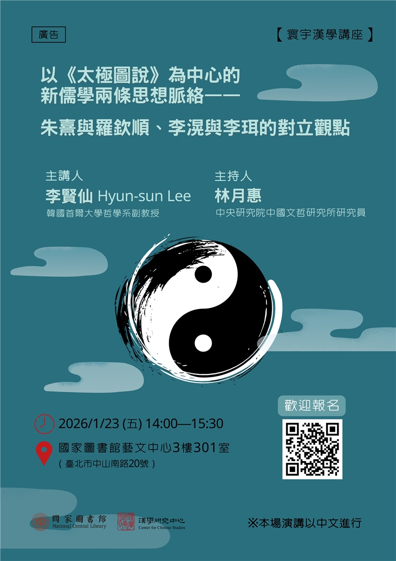 講題:以《太極圖說》為中心的新儒學兩條思想脈絡——朱熹與羅欽順、李滉與李珥的對立觀點