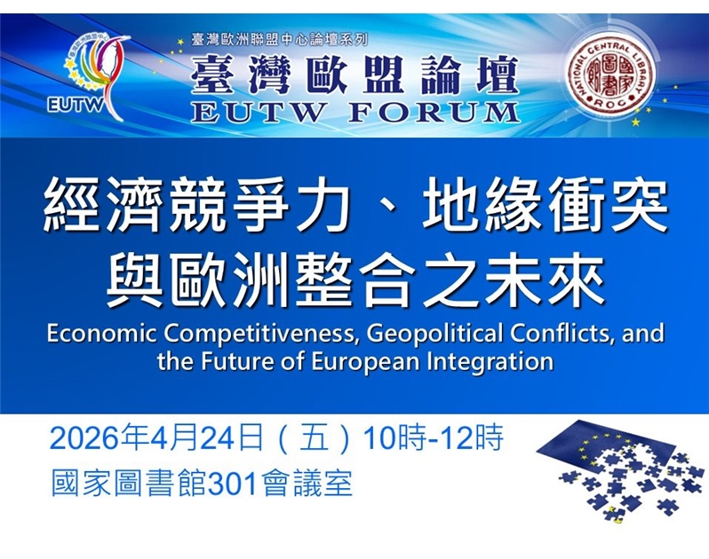 主辦單位: 臺灣歐洲聯盟中心、臺大歐盟卓越中心、政大歐洲聯盟研究中心、國家圖書館