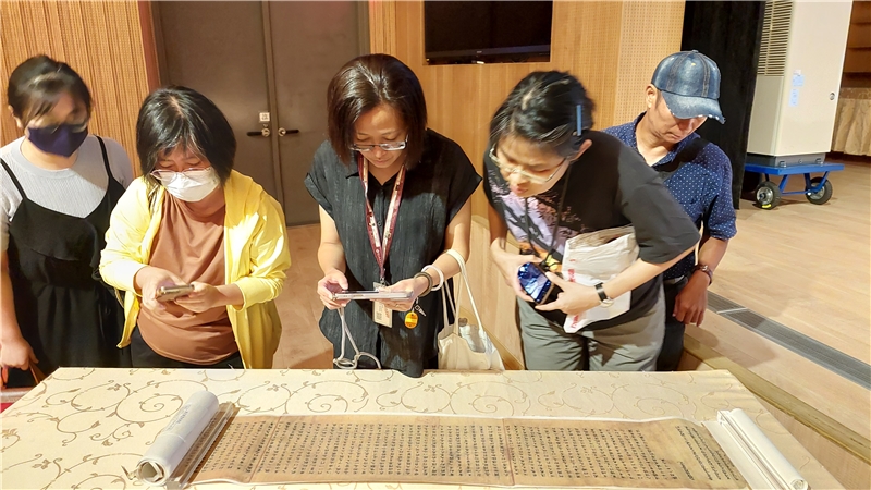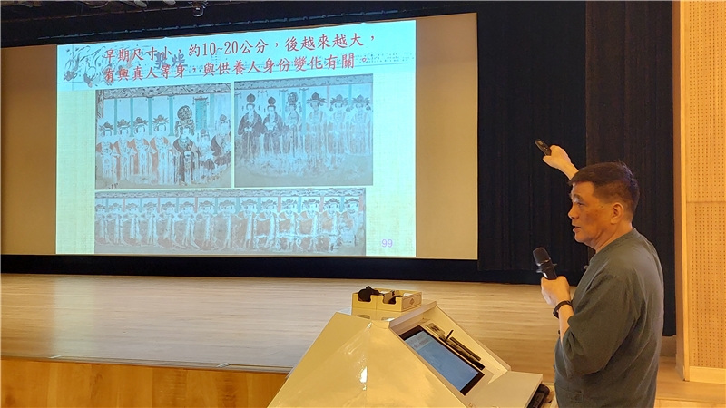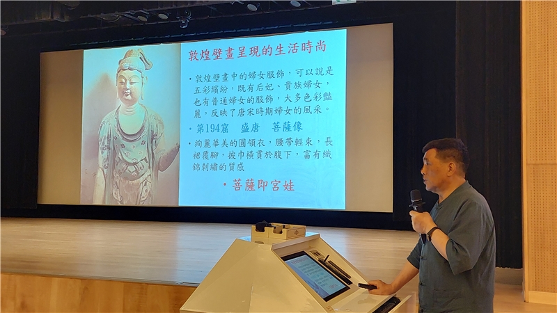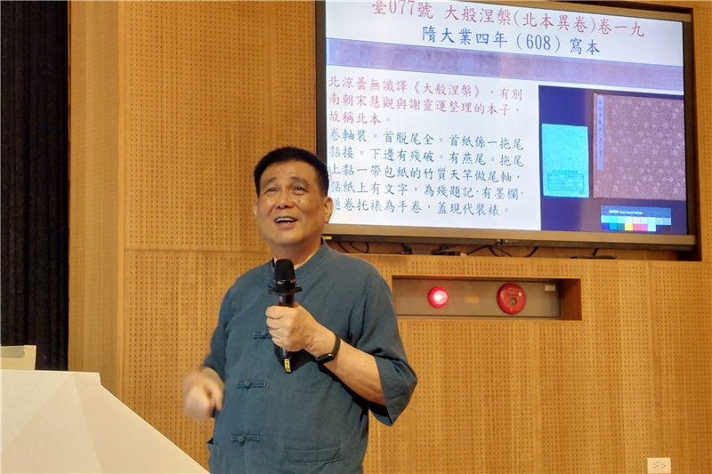 講座中,鄭教授特別挑選多幅石窟壁畫、經典卷子,逐一解析製作、彩繪、書寫、裝幀等歷史背景,帶領聽眾親身感受千年文獻的生命力。現場還特別展示國圖館藏國寶級〈大般涅槃經〉複製卷,供與會者近距離觀賞,體驗親炙藏經的真切感動。