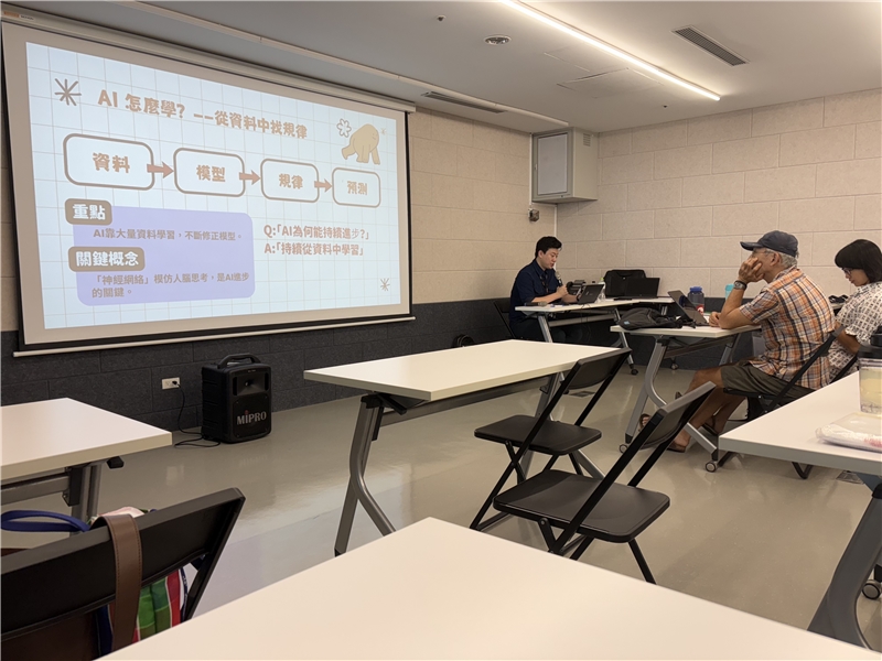 114年「AI時代 創業賦能」課程於10月15日在臺南市立圖書館新總館舉行。課程內容包括資訊素養及數位資源利用、新創資金來源及政府補助、必備AI及實用線上工具等。