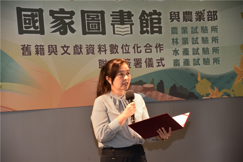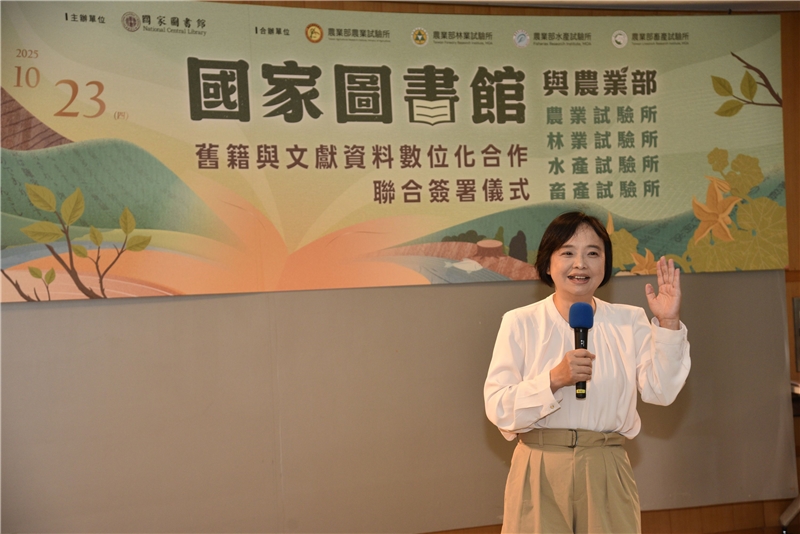 本館王涵青館長致詞時表示,農業部各試驗所保存的文獻資料多為百年以上的古籍,每一頁均承載著臺灣以農立國、產業深耕的歷史軌跡。國圖將運用現代數位科技,在紙本文獻日漸脆化之前,完整保存農作、林業、水產及畜牧等領域的實驗紀錄、研究成果與專業知識,不僅有助於學術研究,更是文化記憶永續流傳的重要基礎。