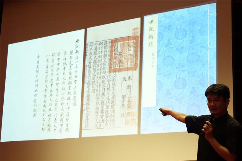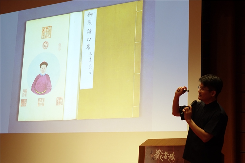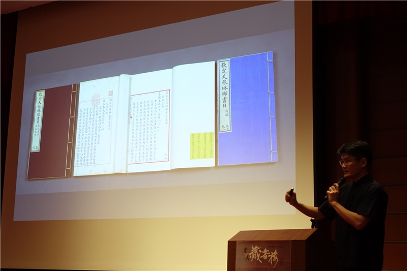曾博士以「清代」「皇家」「善本」「特藏」四個關鍵詞揭開序幕,指出「天祿琳琅」是中國藏書史上最具代表性的皇家藏書,不僅體現乾隆皇帝以國家之名蒐羅、整理、編目歷代珍本的雄心,也標誌著古籍由「知識載體」晉升為「藝術精品」的重要轉折。乾隆皇帝除了喜歡書畫、器物外,他同時也視書如至寶,不僅重視其文化內涵,更追求裝幀、紙墨與書香的完美結合,使得天祿琳琅成為宮廷文化與文人理想交織的象徵。