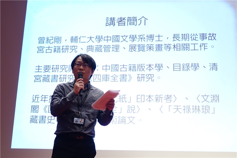 國家圖書館「走入藏書樓──開箱藏書家的千年收藏」系列講座於11月1日下午圓滿落幕,壓軸場邀請到國立故宮博物院書畫文獻處助理研究員曾紀剛博士,帶來專題演講「天祿琳琅:清代皇家善本特藏」,與現場讀者一同探索清代宮廷藏書的輝煌篇章。