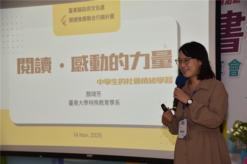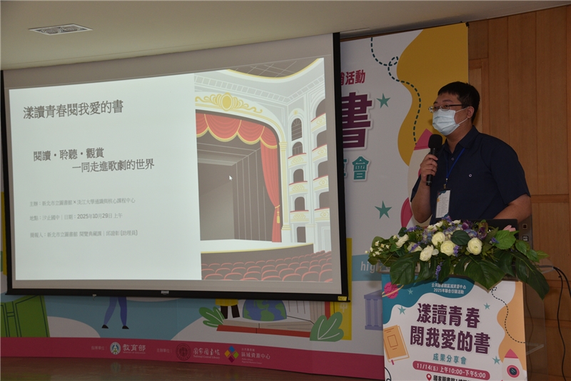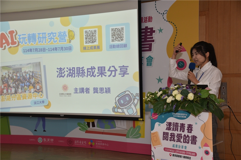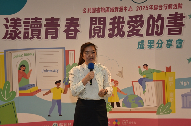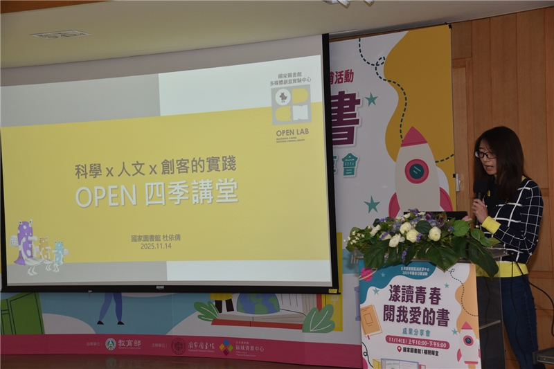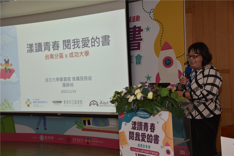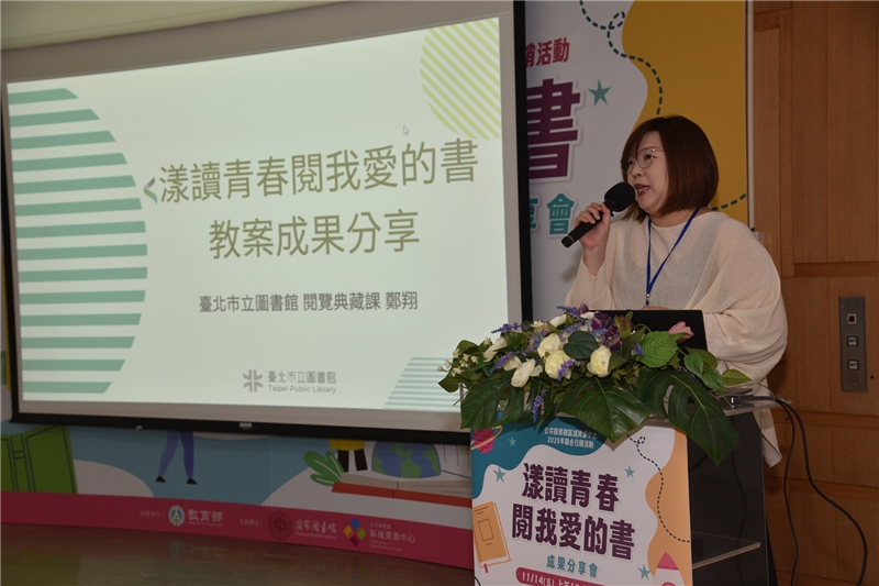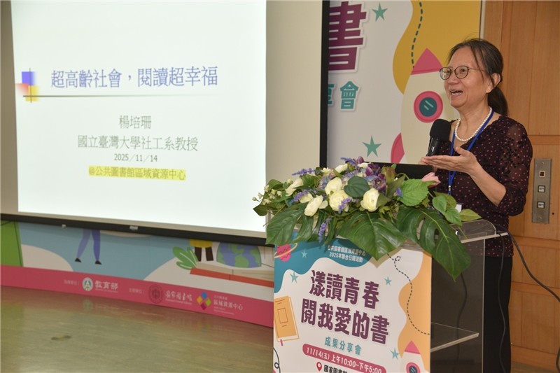 國家圖書館於本(114)年11月14日(星期五)在1樓簡報室舉辦「漾讀青春閱我愛的書」閱讀教案推廣成果分享會,邀集全國公共圖書館共同參與,分享會邀請國立臺灣大學楊培珊教授以及國家圖書館杜依倩主任分別進行高齡及閱讀講堂等2場次專題演講,並由12所公共圖書館區域資源中心分享今年規劃相關活動執行成果,會場外同步展出12所資源中心之活動成果海報,相互學習並交流經驗。
