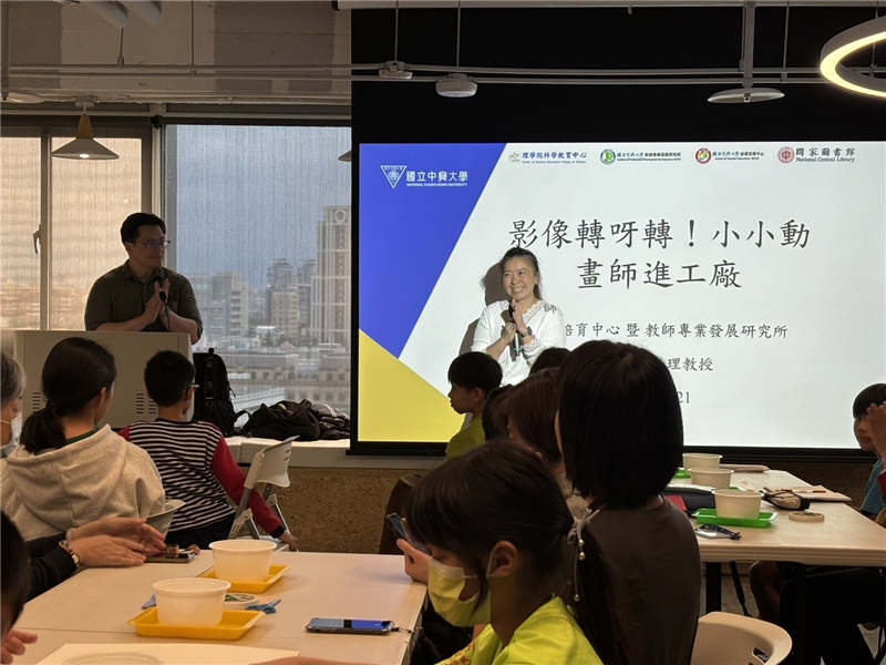114年11月22日星期六下午2時,「OPEN 冬季講堂」系列首場課程—「影像轉呀轉!小小動畫師進工廠」熱烈登場,由國家圖書館王涵青館長親自開場,為本系列活動揭開序幕。本系列課程邀請國立中興大學科學教育中心,以及國立中興大學師資培育中心曾郁然助理教授共同合辦,並透過一系列與主題搭配的實驗手作活動,在生動的體驗中學習科學知識。