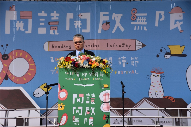 劉國偉次長致詞時表示,今年的閱讀節主題「閱讀開啟無限」,呼應了在現今資訊瞬息萬變的時代,文本探究與深度思考的重要性。劉次長強調:「透過閱讀跨越一切障礙,閱讀讓青少年與孩童遠離過度沉迷3C,讓所有愛書人一起享受閱讀的美好。」