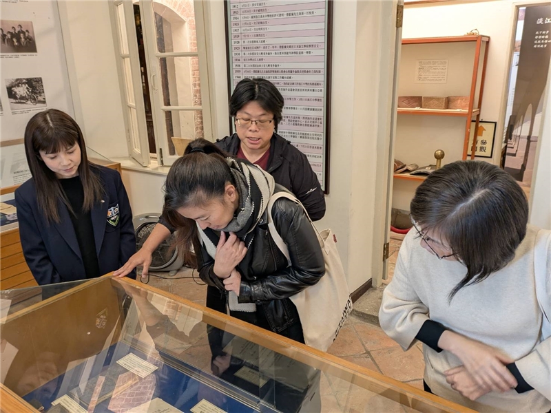 雙方於簽約儀式後,旋即由謝玫曄主任及圖書館紀如珊館長導覽校園歷史建築,以及參觀校史室內預定進行數位化作業的校史文獻。本次合作成果將陸續於國圖「臺灣記憶」系統提供瀏覽,並進一步提升教育史研究與公共利用之深度與廣度。