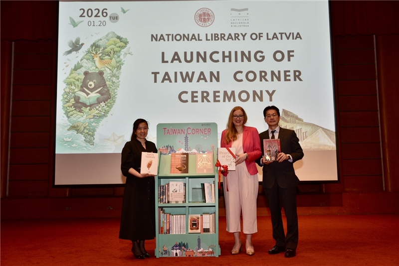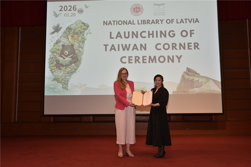 專題演講結束後,本館啟動Taiwan Corner捐贈儀式,由王涵青館長致贈Taiwan Corner予拉脫維亞國家圖書館,為今日的交流活動畫下圓滿句點。
