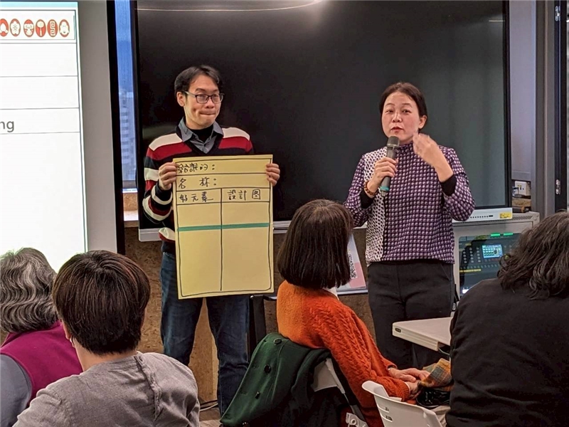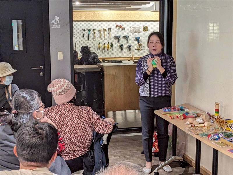 此外,工作坊透過彈珠、沙包、毽子、抽籤等童年遊戲的實作體驗,說明「懷舊」不只是情感回味,而是一種能活化記憶、語言、動作與社交互動的認知刺激方式。透過設計讓不同世代共同參與的遊戲情境,如祖孫、手足或老友間的合作與分享,長者能喚起生命經驗與故事敘說,年輕世代則帶來體能與好奇心,雙方在互動中建立情感連結與成就感。講者以此引導學員思考,如何把懷舊元素轉化為具目標對象的活動設計,使遊戲成為促進身心健康與家庭記憶傳承的媒介。