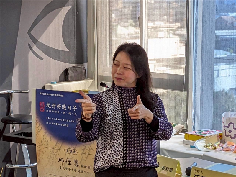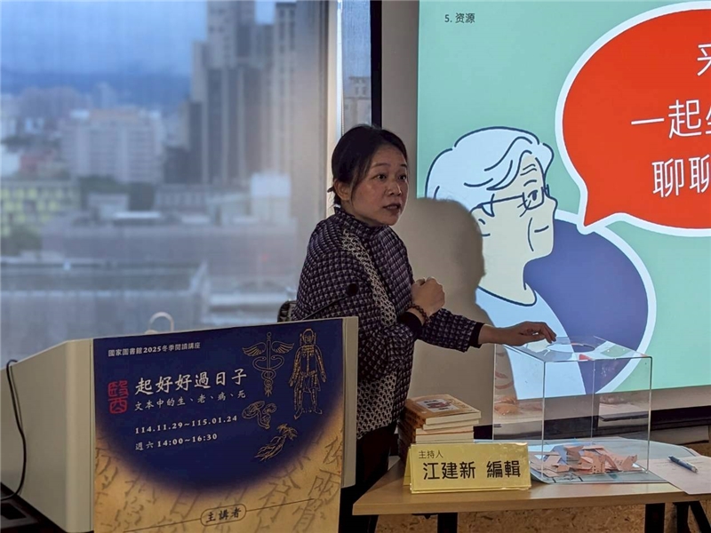 今日(1月24日)為冬季閱讀「醫起好好過日子」系列微講座暨工作坊,邀請臺北醫學大學通識教育中心邱佳慧副教授,以「懷舊治療的認知科學──醫起享受美好舊時光」為題,帶領聽眾進行一場結合微講座與工作坊形式的體驗活動。活動由本館江建新編輯開場主持,介紹講者學經歷與本場活動主旨。