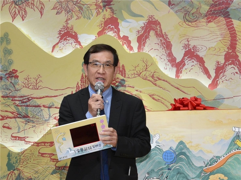 國圖翁誌聰代理館長指出,國圖每年皆參展,甚至第一屆國際書展就在國圖舉行。今年展覽主題「金華藏龍賀興盈」巧妙融合了南部分館的地理座標—臺南新營區的「金華路」與「長榮路」,並取「新營」之諧音。此名稱象徵國家級的典藏力量在此匯聚,寓意知識如「潛藏之龍」蓄勢待發。南部分館的典藏能量獲得社會各界鼎力支持,目前已匯集諸多學界先進之畢生精華,包括中央研究院多位院士捐贈珍貴手稿,同時也匯聚各類歷史與科學領域文獻,如農業部所屬試驗所舊籍資料,為南部分館的學術研究與文化扎根奠定了堅實基礎。教育部梁司長亦於致詞時表示,南部分館具備創新的空間規劃與智慧化服務,並建立重要及罕用出版文獻與數位資源機制,在在顯示出國圖積極任事的精神。