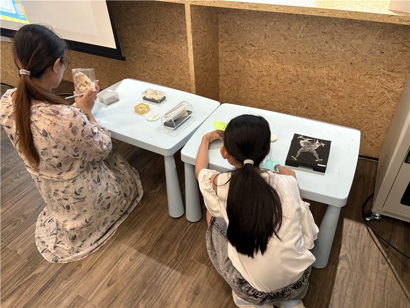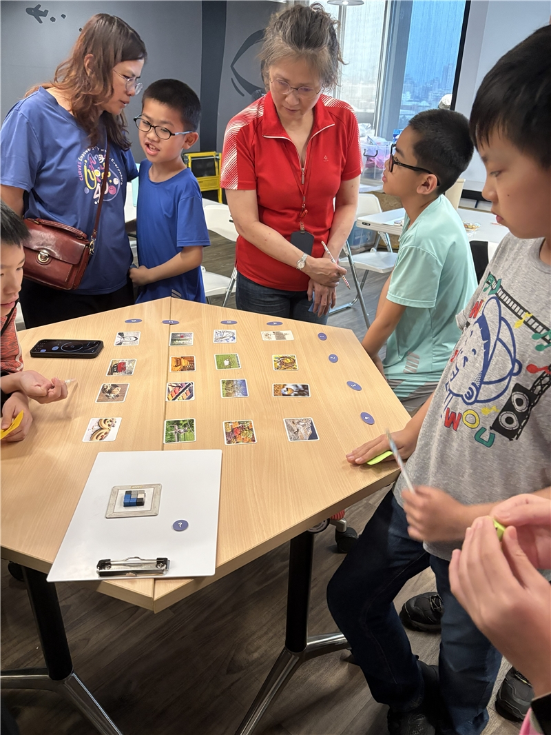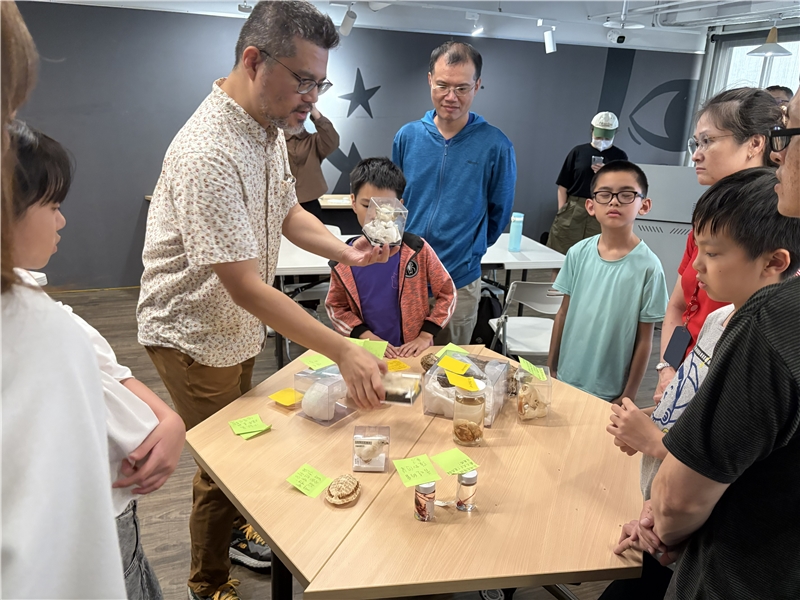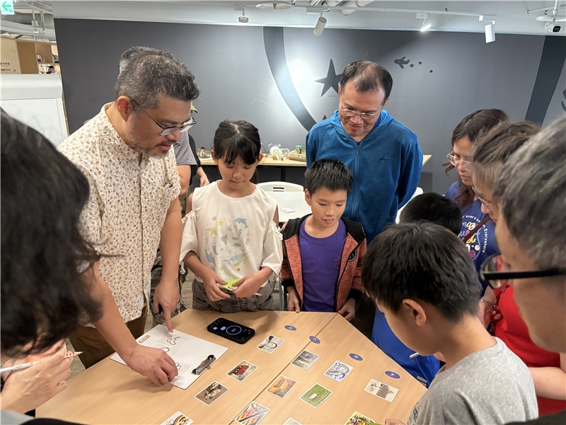 最後進入桌遊時間,每個家庭為一組,挑選素材來製作提示,給其他組猜測抽到的牌是哪一張;熟悉規則後,也用素材來製作提示猜是哪個標本,藉由這種方式讓大家記住標本的特性。
