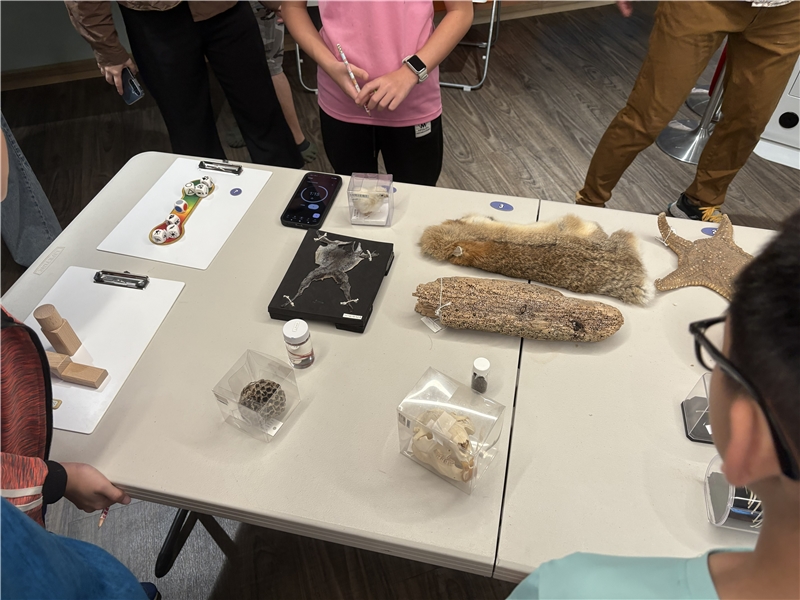 郭老師首先帶領大家認識標本,首先,藉由一塊苗栗山區找到的骨頭來教導學員如何判斷骨頭的類型與位置;接著拿出一隻狗的腿骨請學員判斷是前腳或是後腳,藉此說明骨頭的特性。老師帶來許多標本,擺放在桌上,開放學員自由觀察10分鐘,可小心觸摸,並在觀察後用便利貼寫下想問的問題,老師會在觀察時間結束後統一回答。問題十分多元,老師將不同類型的問題聚集在一起,一一回答。大家對標本充滿興趣,提出的問題包括:小雞標本的毛是真的嗎?師從這個問題切入,講解小雞標本的製作方式。接著也回答了標本如何染色、以及講解各種標本是什麼、怎麼產生的,了解每個標本的特性。