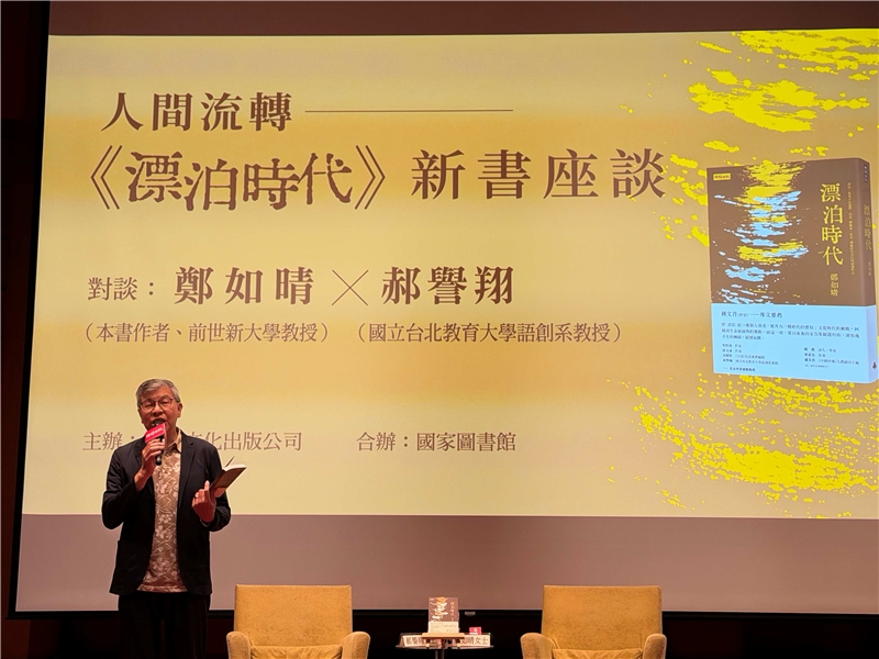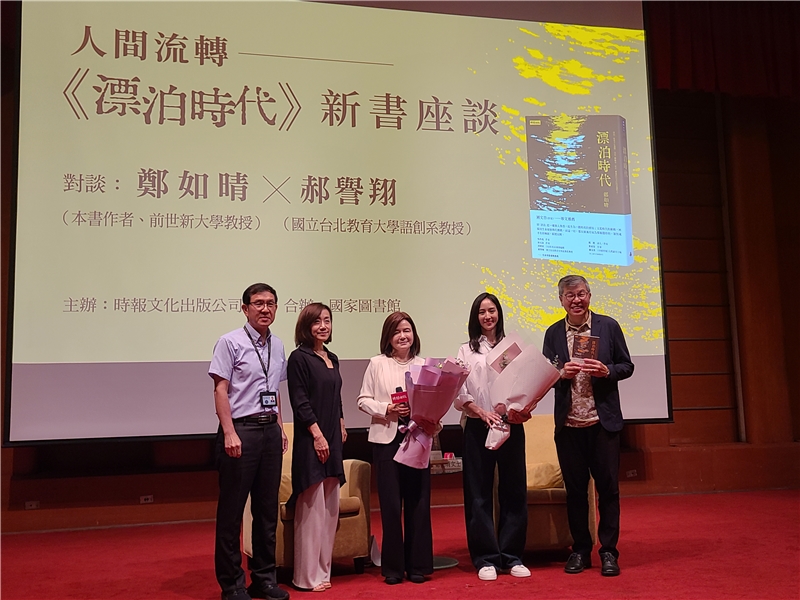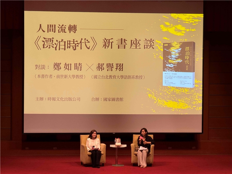 國家圖書館與時報文化出版於115年4月12日(星期日)下午共同辦理「人間流轉──《漂泊時代》新書座談」活動,由本書作者鄭如晴教授與國立臺北教育大學語文與創作學系郝譽翔教授共同展開深度對談,分享二位生命中的故事及漂泊。