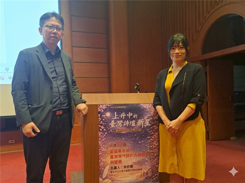 演講會後,聽眾也與主講人就現代詩的閱讀門檻、古典意象的辨識方式,以及現代詩是否仍能保有「可感」與「可讀」的特質踴躍提問。余教授結合其研究與教學經驗回應指出,古典與現代並非對立關係,而是在不斷對話中彼此生成;理解古典,不必然意味回到過去,而是為了看見語言如何在歷史中積累力量,又如何在今日重新發聲。整場講座在豐富而細膩的討論中圓滿結束。