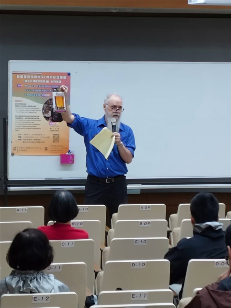 本館與趙麗蓮教授文教基金會合作辦理「跨文化溝通的新思維」系列演講,邀請傑出專家學者與民眾分享英語學習的課題,落實提升國際視野以因應全球變遷與挑戰之道。演講活動於4月25日(週六)上午10時於本館簡報室舉行,邀請輔仁大學英國語文學系Thomas H. Nash教授,以「How to Maintain and Improve Your English(Or Any Other Language)」為題發表精彩演講。