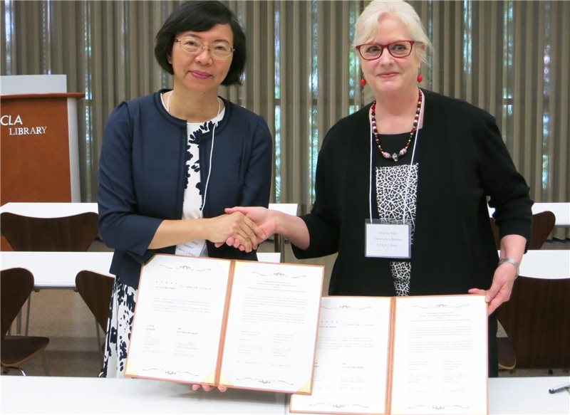 105年8月17日下午,國家圖書館曾淑賢館長與加州大學洛杉磯分校圖書館館長Virginia Steel簽署「中文古籍聯合目錄合作備忘錄」,這是國圖建置的中文古籍聯合目錄第71所合作單位。開啟未來兩館中文古籍合作長長久久的友誼,以及展現本館持續推展臺灣國際文化交流之具體成果。