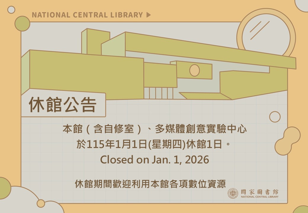 本館(含自修室)及多媒體創意實驗中心休館1日。