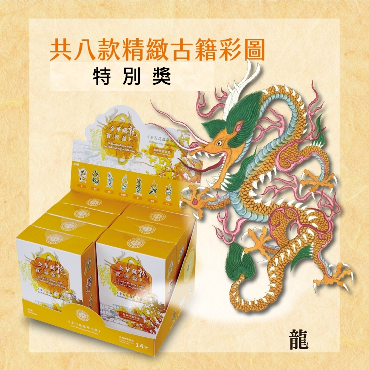 (二)特別獎:若參與者全程完成五支影片問卷以及最終整合問卷填寫,每次皆位列回填時間前15名,即獲特別獎-《金華藏龍賀興盈》拼圖吊飾盲盒1大盒(內含8小盒),至多15名。