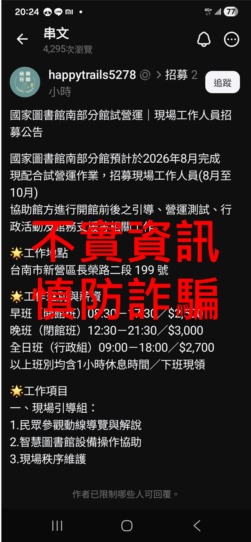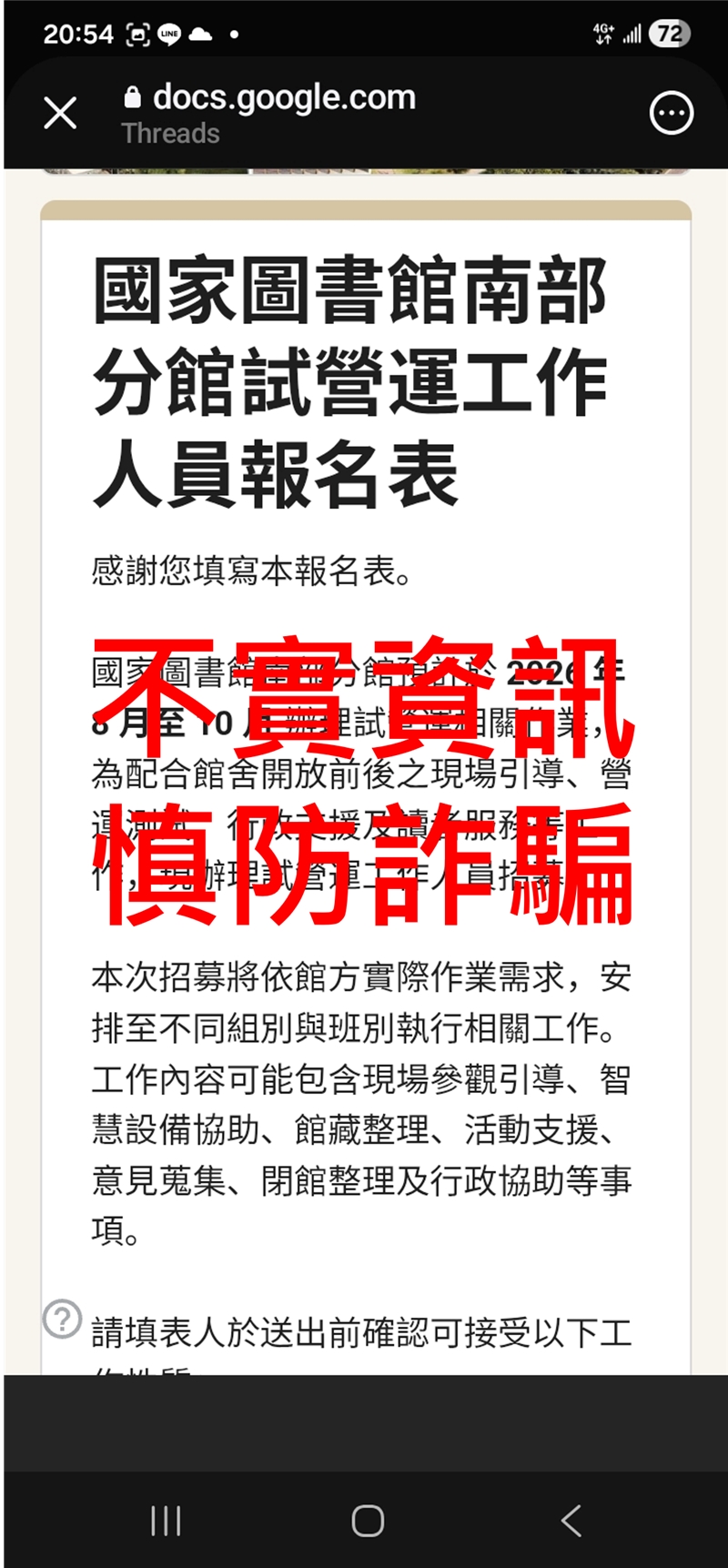 【澄清公告】請留意冒用國家圖書館名義之假訊息,慎防詐騙