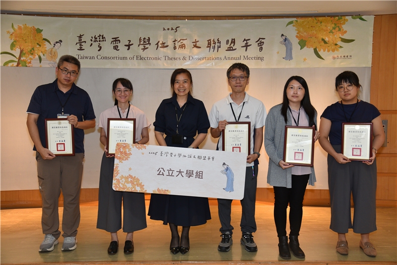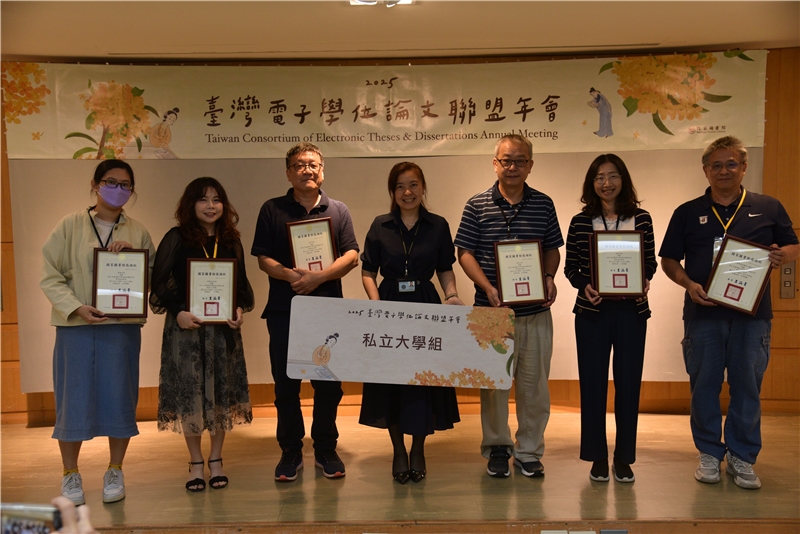 「2025年臺灣電子學位論文聯盟年會」致贈感謝狀予「學位論文開放、取用及資源貢獻」獲獎學校(6)