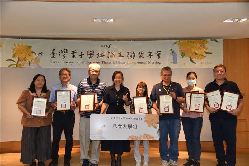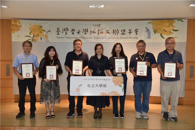 「2025年臺灣電子學位論文聯盟年會」致贈感謝狀予「學位論文開放、取用及資源貢獻」獲獎學校(7)