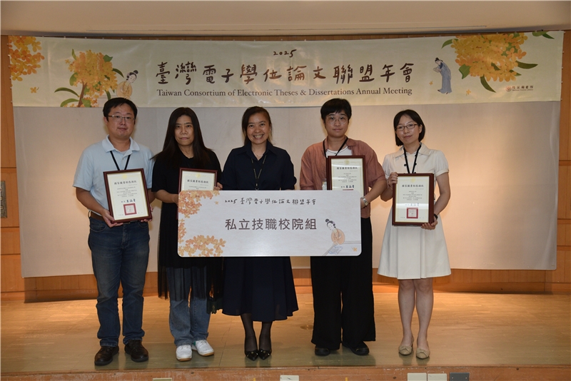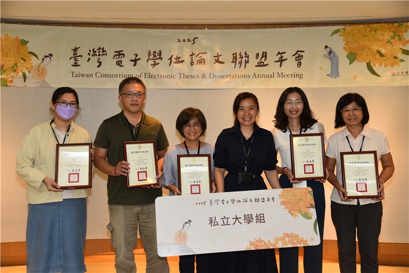 「2025年臺灣電子學位論文聯盟年會」致贈感謝狀予「學位論文開放、取用及資源貢獻」獲獎學校(5)