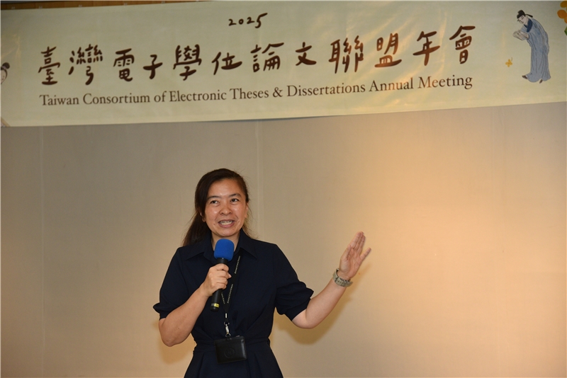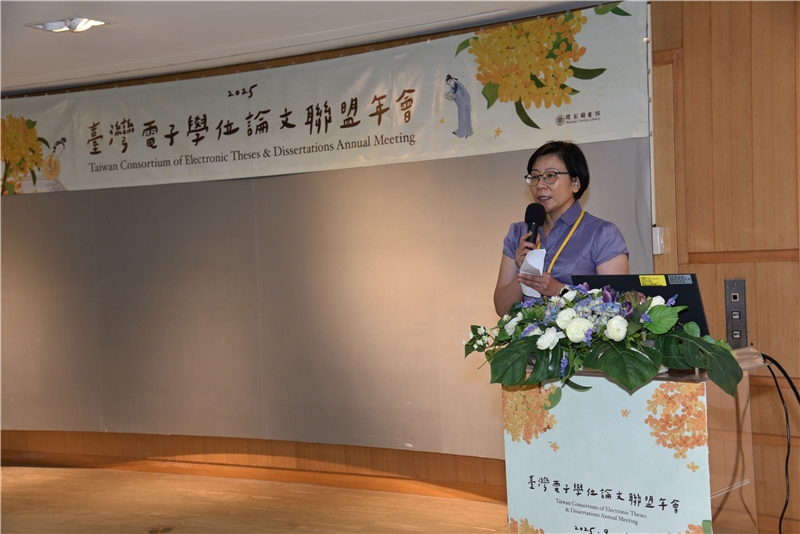 「2025年臺灣電子學位論文聯盟年會」學位論文相似檢測系統試用學校代表-國立臺北科技大學圖書館高淩菁圖資長致詞