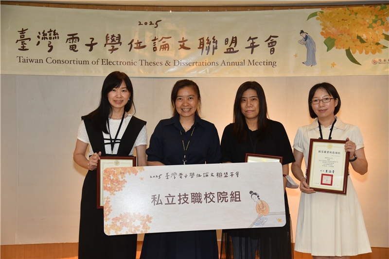 「2025年臺灣電子學位論文聯盟年會」致贈感謝狀予「學位論文開放、取用及資源貢獻」獲獎學校(4)